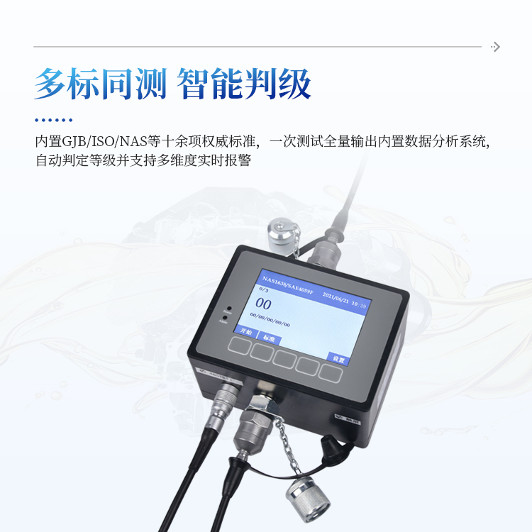 内置ISO4406、NAS1638、SAE4059、GJB420A、GJB420B、ГOCT17216、GB/T14039等颗粒污染度等级标准