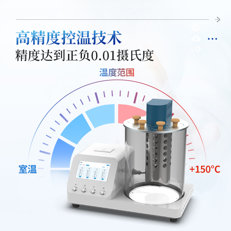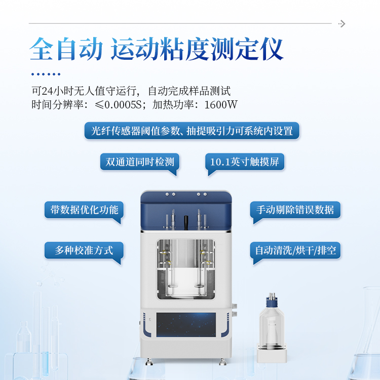 本产品石油产品运动粘度自动测定仪是依据国家标准《GB265-88石油产品运动粘度测定法》设计制造的专用测试仪器,适用于测定液体石油产品的运动粘度。本仪器具有计时试样运动时间,自动计算运动粘度的最终结果。本方法适用于测定液体石油产品(指牛顿液体)的运动粘度,其单位为m2/s,通常在实际中使用为mm2/s。动力粘度可由测得的运动粘度乘以液体的密度求得。本方法是在某一恒定的温度下,测定一定体积的液体在重力下流过一个标定好的玻璃毛细管粘度计(品氏、乌氏)的时间,粘度计的毛细管常数与流动时间的乘积,即为该温度下测定液体的运动粘度。该温度下运动粘度和同温度下液体的密度之积为该温度下的动力粘度。