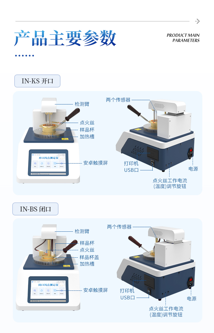 全自动开口闪点和燃点测定仪主要用于石油产品和其他易燃液体在特定条件下,与空气混合后遇火源发生闪火和燃烧的最低温度的仪器。
