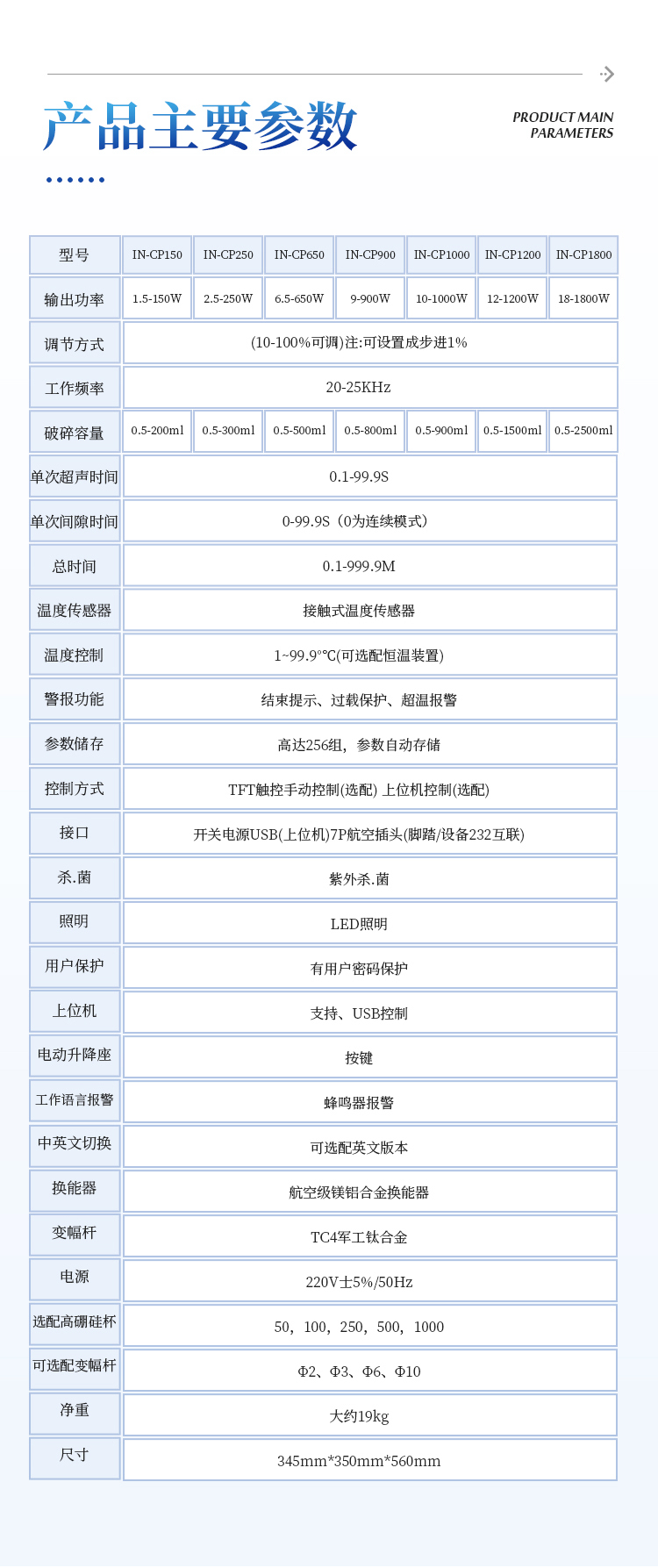 破碎容量 | 0.5--800ml(需选配相应的变幅杆) |