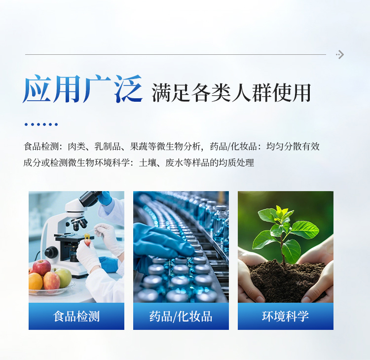 药品/化妆品:均匀分散有效成分或检测微生物。