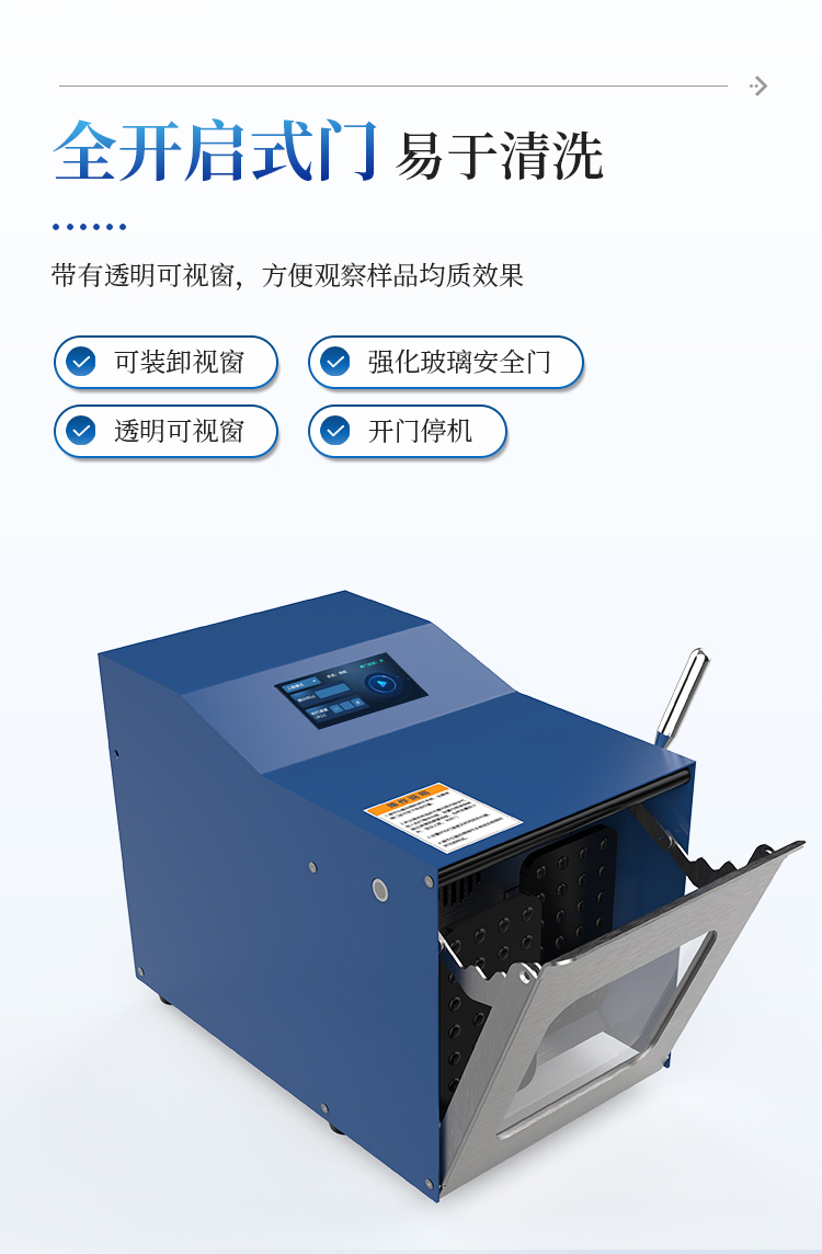 7. 带有透明可视窗,方便观察样品均质效果。