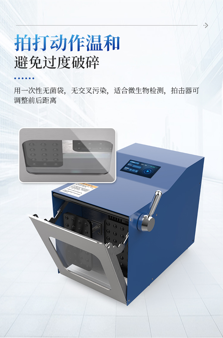 1. 拍打动作温和,避免过度破碎,适合微生物检测。