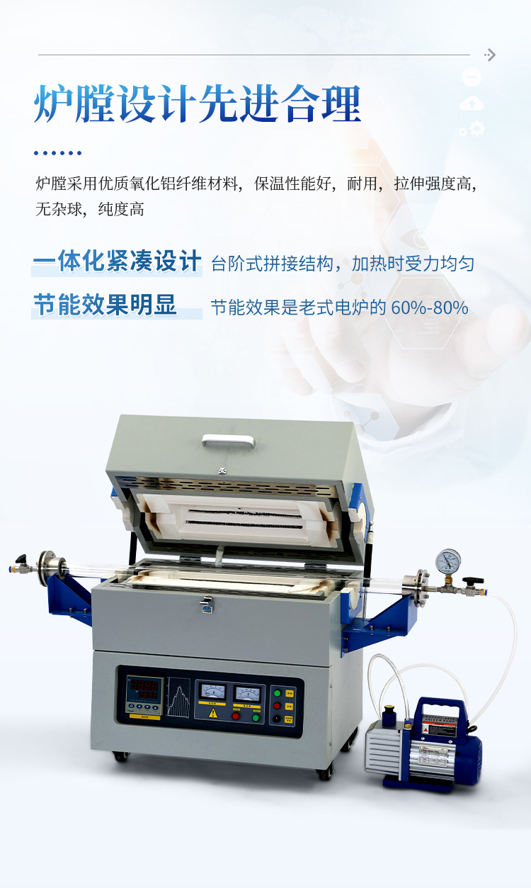 1、炉膛采用优质氧化铝纤维材料,保温性能好,耐用,拉伸强度高,无杂球,纯度高,节能效果明显;