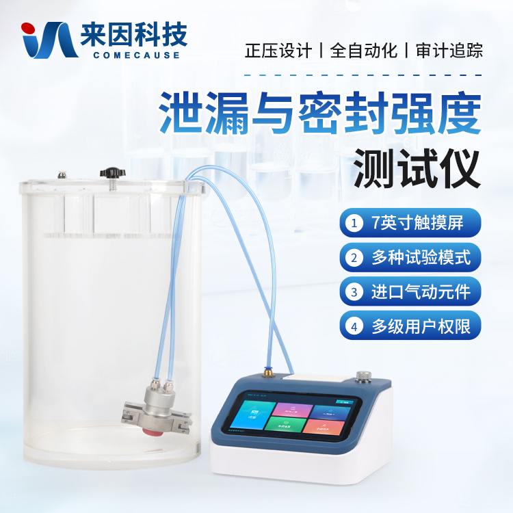泄漏与密封强度测试仪,专业适用于各种热封、粘接工艺形成的软包装件、无菌包装件等各封边的封口强度、热封质量、以及整袋胀破压力、密封泄漏性能的量化测定;对软包装袋所使用材料的抗压强度、耐破强度等指标分析;各种塑料防盗瓶盖密封性能、瓶盖连接脱扣强度、材料的应力强度的量化测定;瓶体密封性、抗压性、耐破性等评估分析。通过正压法来进行测试,模拟实际使用环境下的密封强度、泄漏性能和耐压极限,为各行业的包装质量管控提供可靠的依据。