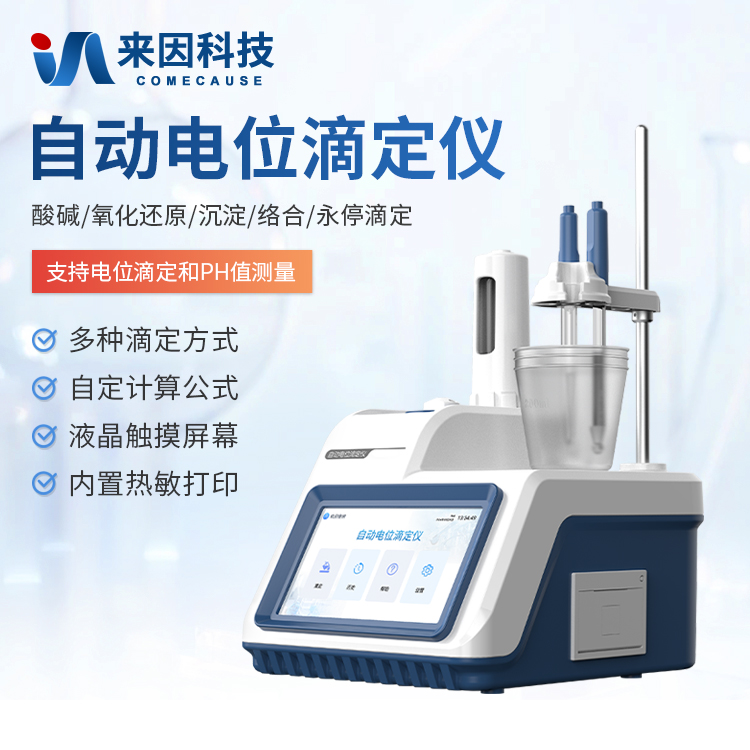 简要描述: 自动电位滴定仪是一种用于化学分析的精密仪器,他通过自动添加滴定剂来确定样品中特定成分的浓度。该仪器基于电位滴定原理工作,即根据在滴定过程中电池电动势的变化来确定滴定终点的一款滴定设备。