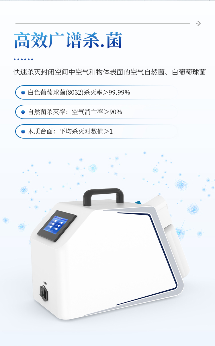 2、高效广谱杀菌,可杀灭白色葡萄球菌、空气中自然菌等。