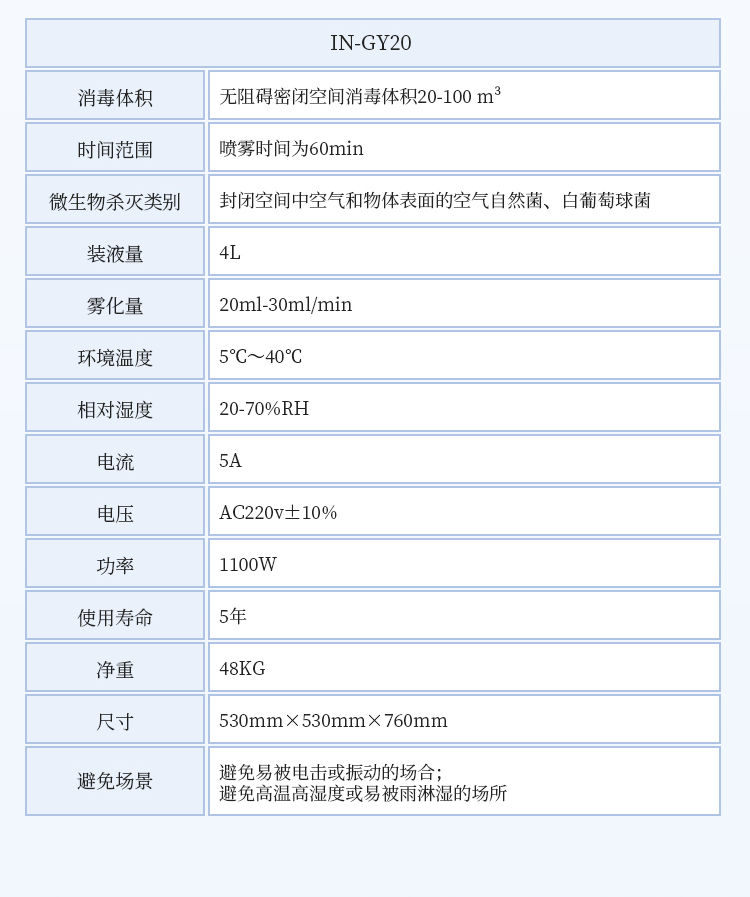 6、使用体积:20m³(模拟现场实验:白色葡萄球菌,杀灭率>99.99%)30m³(现场实验:空气中自然菌,消亡率>90%)