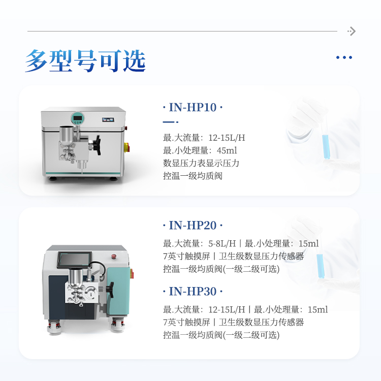 简要描述: 高压均质机是以高压往复泵为动力传递及物料输送机构,将物料输送至工作阀部分。物料在通过工作阀的过程中,在高压下产生强烈的剪切、撞击和空穴作用,从而使液态物质或以液体为载体的固体颗粒得到超微细化。