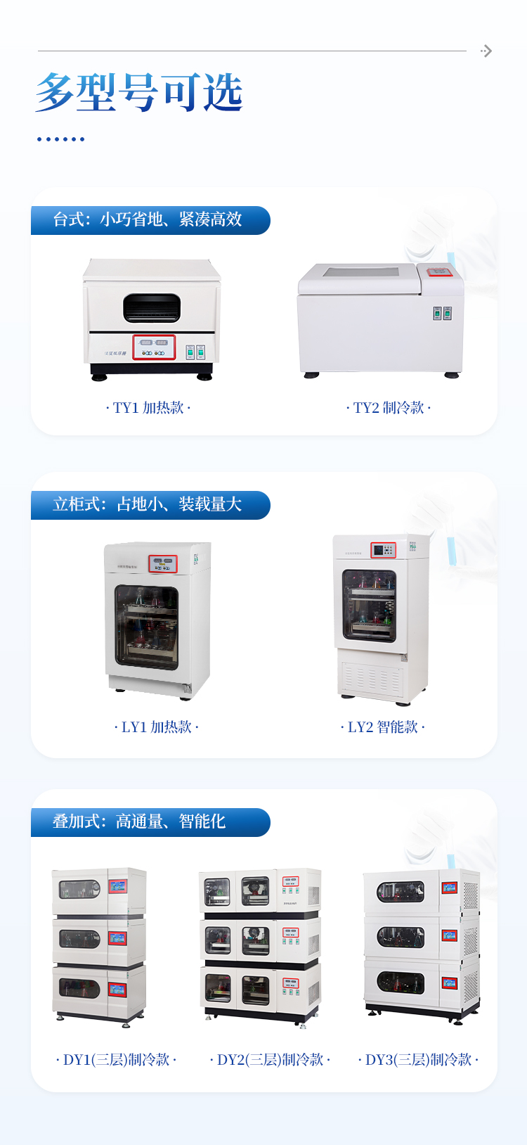 简要描述: 双层恒温振荡器具有占地小,装载量大的特点.该型摇床装备PID控温系统和无刷直流电机控制系统.可满足对温度和速度有较高要求的用户需求.