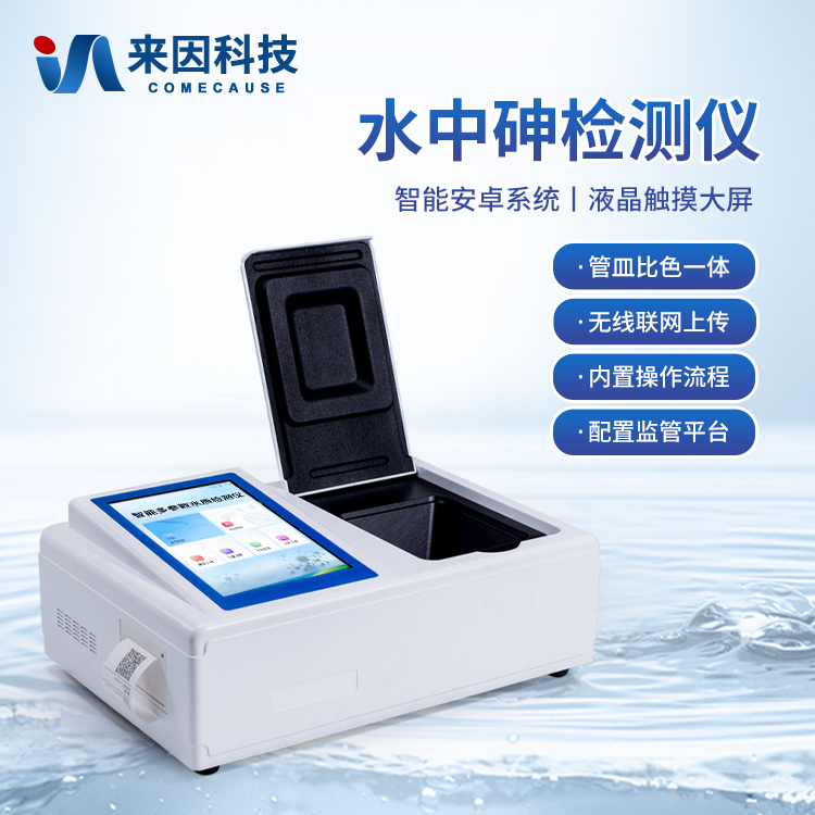 简要描述: 水中砷检测仪是一款基于分光光度法原理研发的智能化水中总砷检测仪,专门用于饮用水、地表水、地下水及废水中总砷的快速定量分析。仪器采用高性能LED光源与大面积光电池,结合优化的硝酸银-聚乙烯醇吸收显色体系,确保了在420nm波长下检测的高灵敏度与稳定性。其搭载的Android智能操作系统与,使操作直观流畅;具备万条数据存储、Wi-Fi/蓝牙传输及防水机身,非常适合实验室与现场检测场景。仪器支持多点标定与内置曲线,配合Type-C通用充电与长续航设计,为用户提供了准确、便捷、可靠的一体化砷检测解决方案。