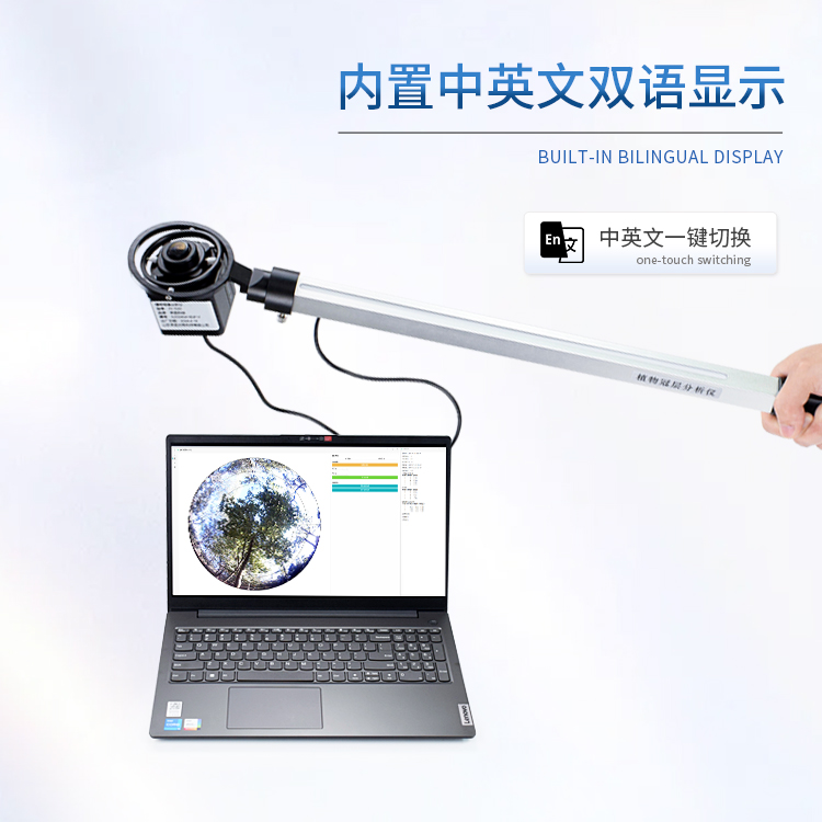 1. 鱼眼镜头可自动保持水平状态:专门为植物冠层结构测量设计的小型鱼眼摄像镜头安装在手持式万向平衡接头上,可自动保持镜头处于水平状态,无需三角架;