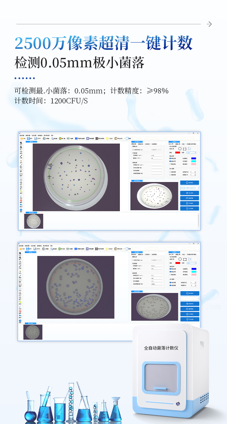 微小菌一键计数:适用于直径0.1mm-0.5mm的微小菌落的快速统计