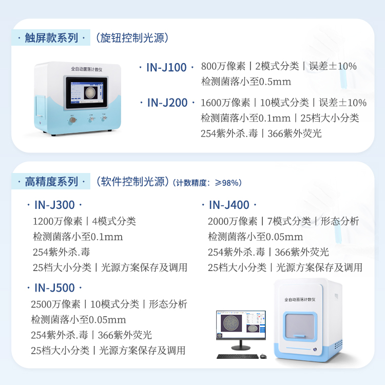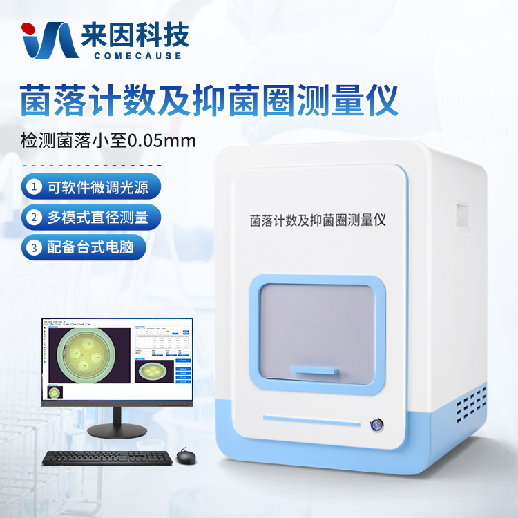 本产品是一款集图像采集、数据处理与统计分析于一体的菌落计数及抑菌圈测量仪,广泛应用于食品、药品、化妆品、环境监测、医疗卫生、科研院校等领域。仪器采用先进的数字图像处理技术,具备荧光菌识别、抑菌圈测量及效价测定和杀菌功能,可快速精准完成培养皿内菌落的测量分析、抑菌圈测量及抗生素效价测定,大幅提升实验效率,有效降低人工操作误差。
