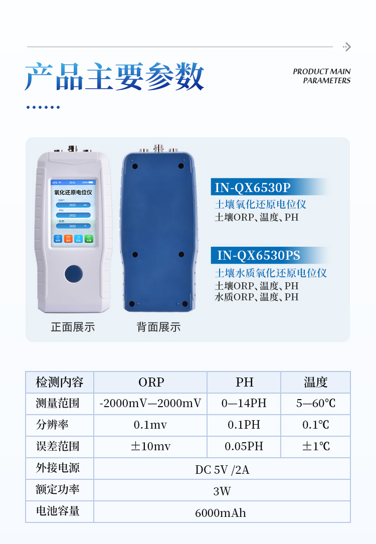 IN-QX6530型智能便携式氧化还原电位测定仪是一种适用于对土壤和水(介质)Eh、mV、pH测量的便携式仪器,可测量氧化还原电位(Eh)、mV、pH和温度。由于采用了微电脑处理器,所以该仪器具有操作简便,测量精度高,可靠性好等优点,可广泛应用于环境保护对土壤、污水,废水的检测,水产养殖对水质的监测,以及工业循环水对水质的监控检测。
