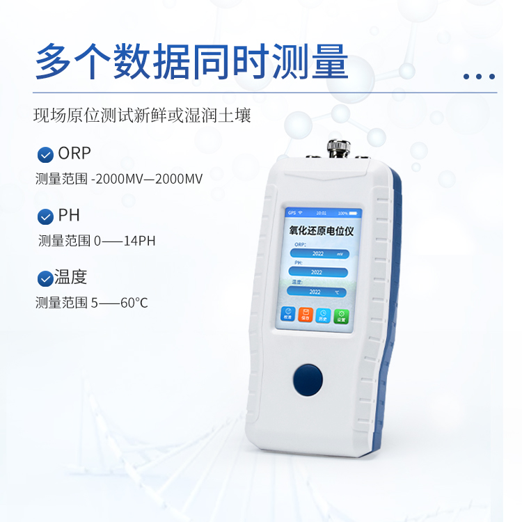简要描述: 土壤氧化还原电位仪是一种适用于对土壤和水(介质)Eh、mV、pH测量的便携式仪器,可测量氧化还原电位(Eh)、mV、pH和温度。该仪器具有操作简便,测量精度高,可靠性好等优点,可广泛应用于环境保护对土壤、污水,废水的检测,水产养殖对水质的监测,以及工业循环水对水质的监控检测。