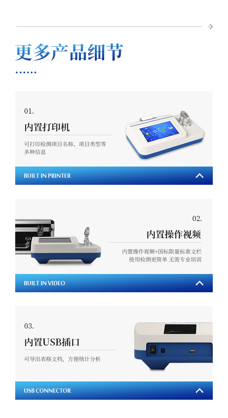 4、仪器内置操作说明书文档和操作视频,使用检测更简单,无需专业培训,适用于非专业5、人员现场检测;