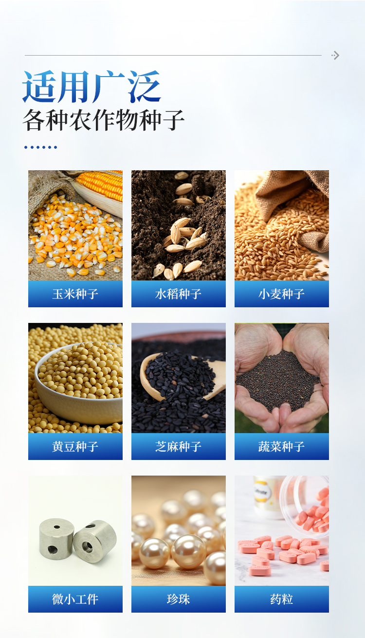 简要描述: 全自动分样数粒仪适用于玉米、水稻、小麦、黄豆、芝麻、蔬菜等各种农作物种子、瓜菜种子的计数,还可以用于微小工件、珍珠、药粒等物品的快速准确计数。