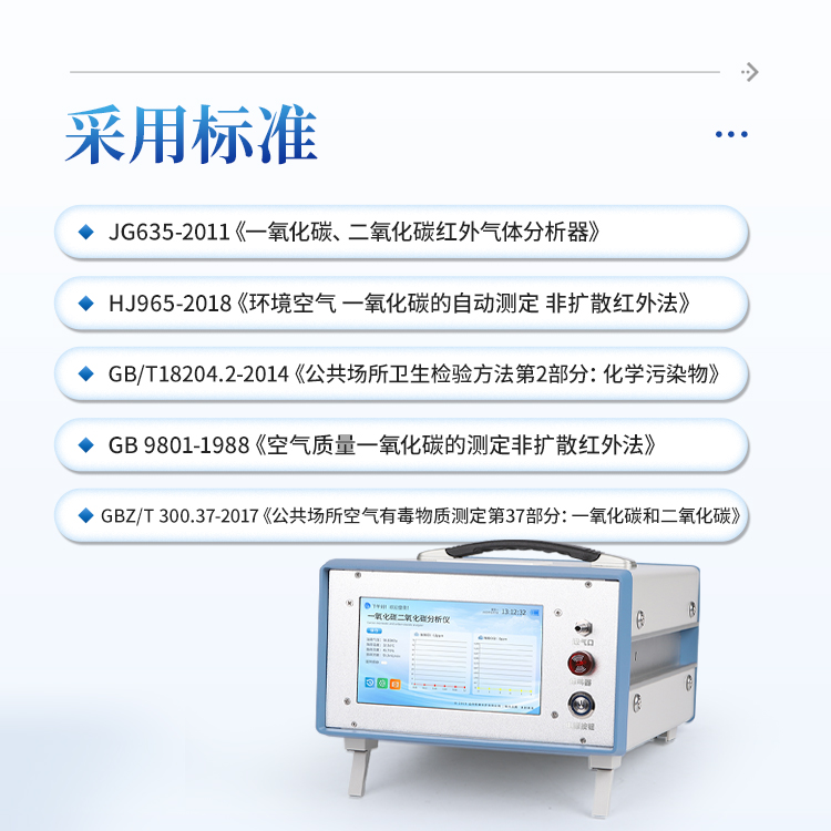 红外CO是我厂新推出的一种利用红外光谱吸收原理,对低浓度的一氧化碳测量仪器,红外一氧化碳检测仪,同时可以检测一氧化碳浓度、温度和湿度。具有非常清晰的彩色触摸屏,声光报警提示,带内置泵,红外一氧化碳气体分析仪广泛用于公共场所、卫生监督、环境监测、等气体的检测与监测。成功解决了,在高温和低温测量中的精度保证和补偿、精度非常的高,可用于科研等监测部门。本仪器符合GB/T18204.23-2000《公共场所空气中一氧化碳检验方法》和GB/T9801-88《空气质量一氧化碳的测定非分散红外法》的国家标准;符合JJG635-2011《一氧化碳、二氧化碳红外线气体分析器》的国家计量检定规程。