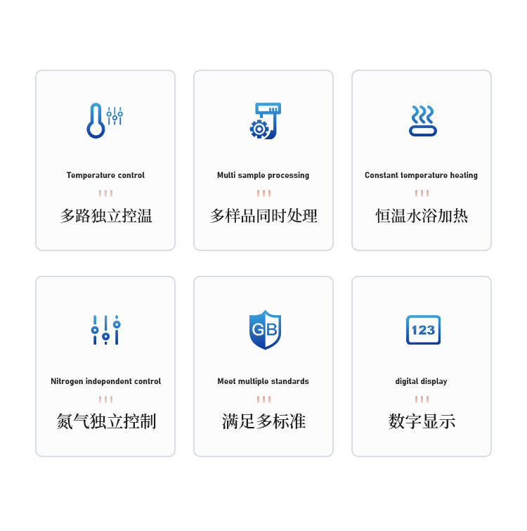 5、每个样品的氮气流量独立控制调节或关闭,针阀气体流量计准确控制和显示气体总消耗量。