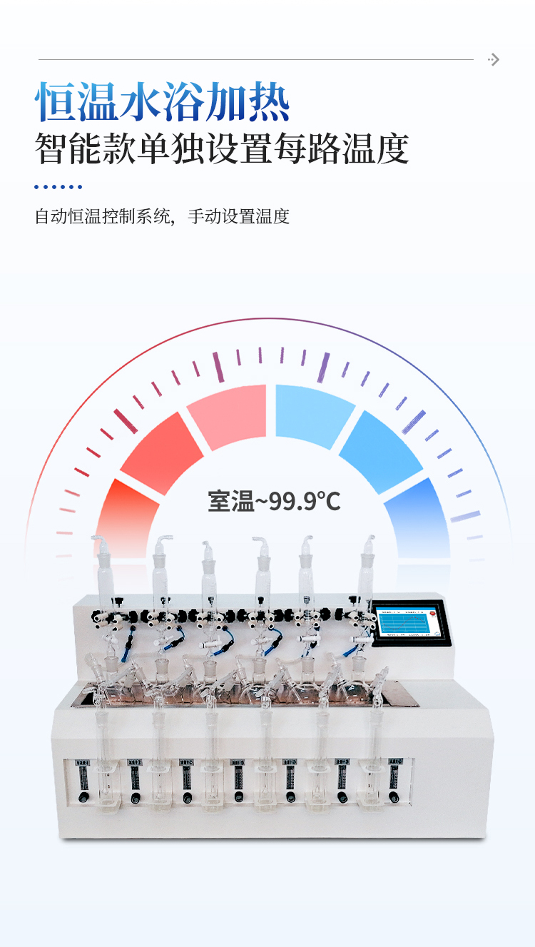 3、恒温水浴加热,具有快速自动恒温控制系统,加热温度可以手动设定。