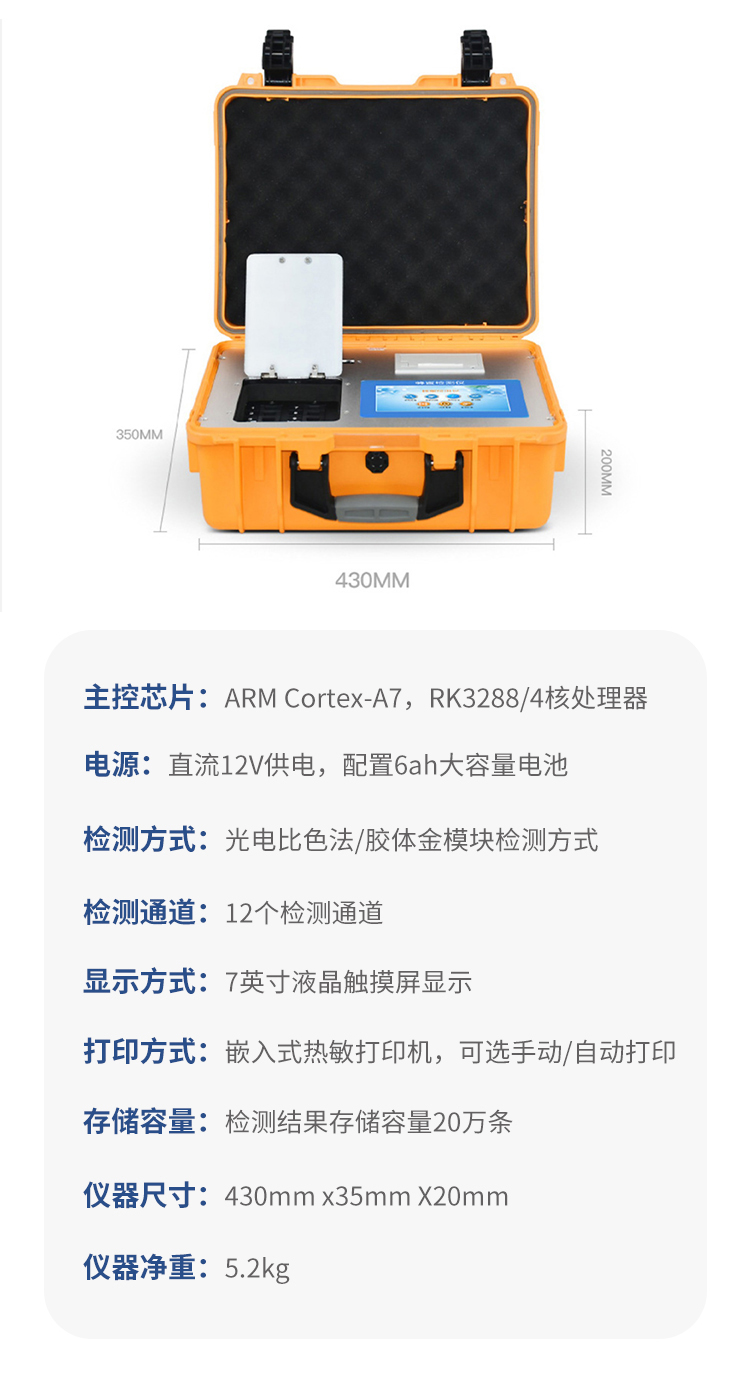 6、一体化便携式快检设备,满足现场及流动检测使用需求,能够在同一软件下实现所有检测项目的检测,并可通过同一窗口直观显示检测结果。